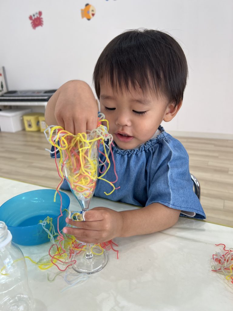 あれなんだ?楽しそう!と心をつかめば、みてみて~と大人が興味を引き付けなくても、自分から寄ってきてくれますし、10分、20分、30分…と時間があっという間に過ぎていくくらい夢中になって遊びます(^^)